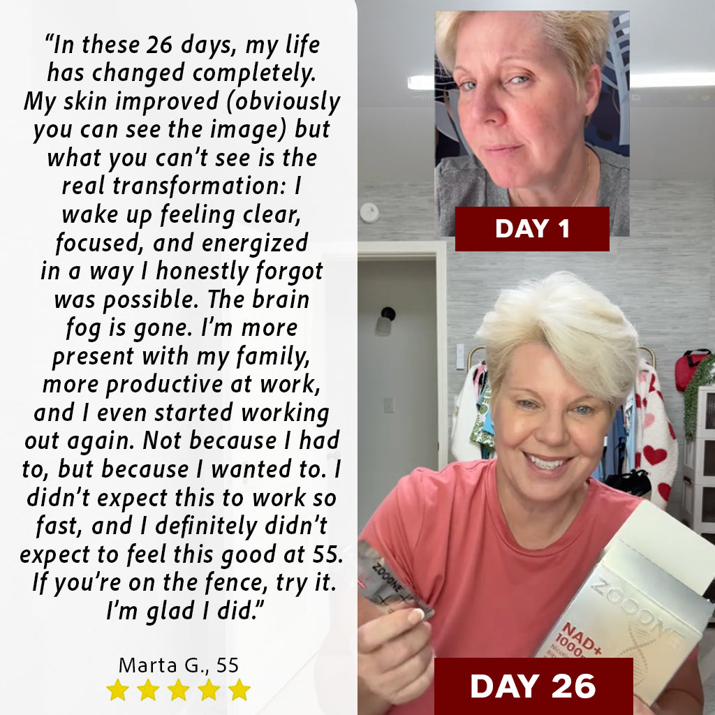 Absolutely. Many users in their 40's see visible results with Liquid NAD+—and feel better, too. You’re never too early or too late to feel good in your own body again. We’ve got your back every step of the way.